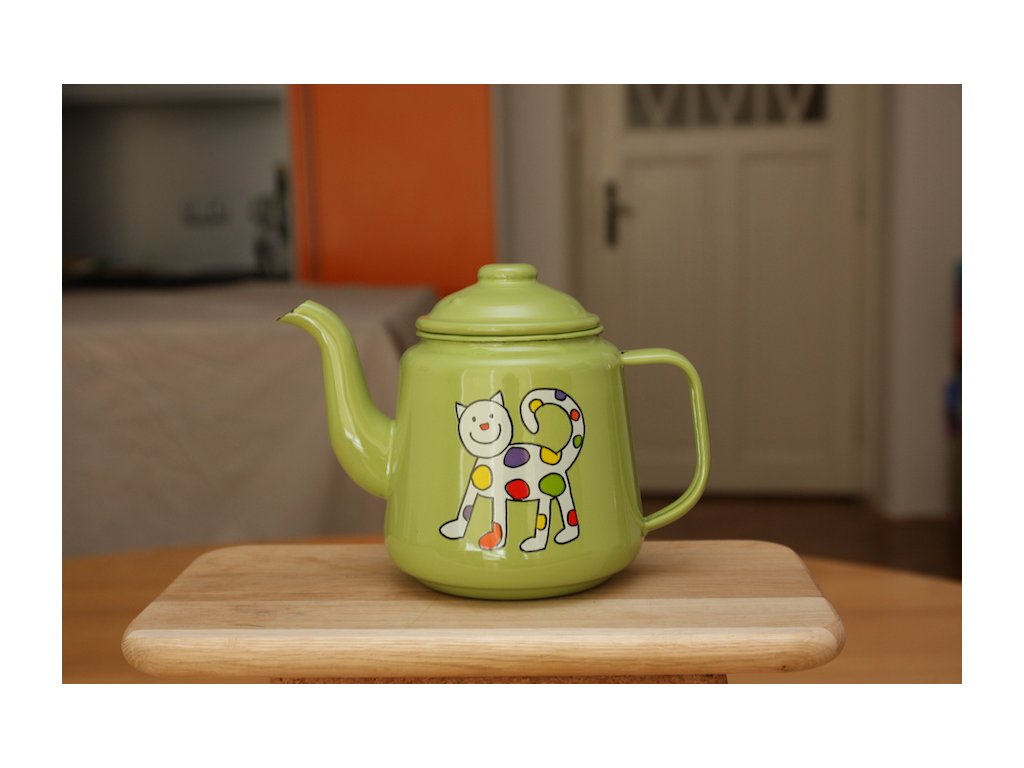 Co konvice snese? Plynový hořák, indukci, elektrickou i sklo-keramickou desku, oheň a dokonce i myčku. Pozor, nedavajte jej do mikrovlnky (je totiž z posmaltované oceli). Je to báječná alternativa k keramickým konvicím (idealní také pro Montessori a lesní školy a školky)