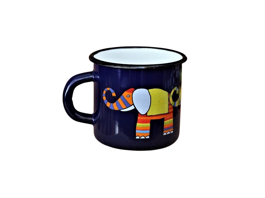 Smaltovaný multifunkční hrnek - tmavě modrý plecháček s motivem slona pro štěstí. Potěší nejen vás, ale je vhodný jako originální dárek pro všechny, kdo potřebují trochu štěstíčka.. Smaltovaný plecháček je skvělým společníkem i na dobrodružné cyklistické výpravy do hor i na vodu, pod stan i na tábor.